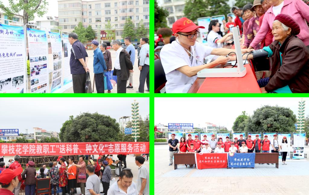 活动现场,医学专家、教授为当地居民提供量血压、测血糖等健康服务,现场为咨询的群众答疑解惑。此外,活动志愿者通过资料发放、展板宣传、现场讲解等方式,为当地居民普及了钒钛文化知识、农业养殖技术及食品安全卫生知识,让他们了解了攀枝花地区钒钛产业的发展历史,切实解决他们在生产生活中的一些疑难问题。