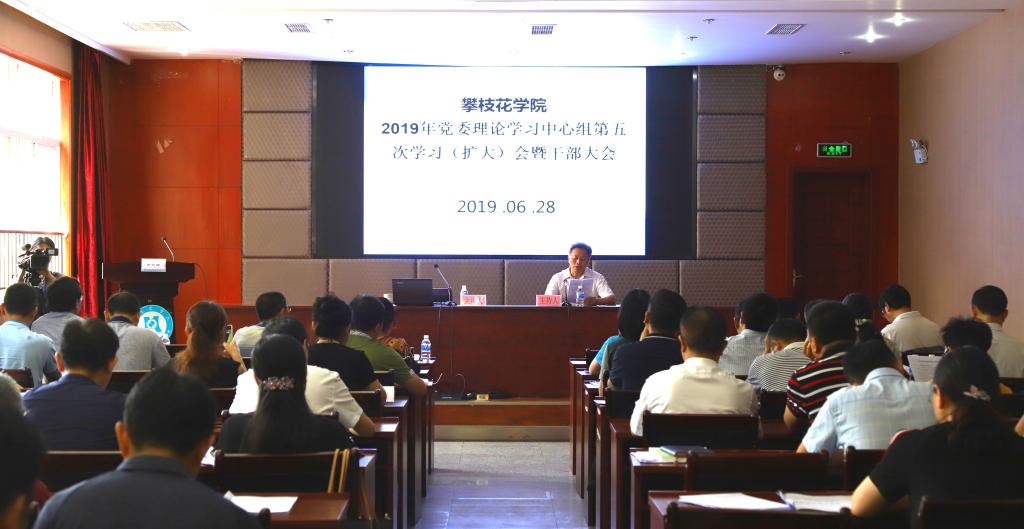 6月28日上午,我校在办公楼四楼附楼会议室召开2019年党委理论学习中心组第五次学习(扩大)会暨干部大会。会议主题是:学习习近平总书记在全国学校思政课教师座谈会、纪念五四运动100周年大会,培养有理想、有本领、有担当的新时代青年。全体在校副县级及以上干部以及学校全体思政课教师参加会议。本次会议共有两个阶段,第一个阶段是中心组学习(扩大)会,第二阶段为干部学习大会。会议由学校党委副书记、校长王曙光同志主持。