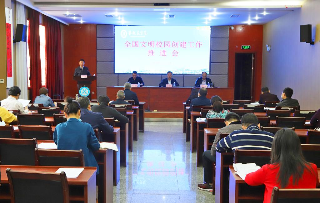 为扎实推进创建工作,会议要求,一是要提高认识。文明校园创建工作是贯彻落实习近平新时代中国特色社会主义思想、办好中国特色大学的重要要求,是贯彻落实立德树人根本任务、建设应用型一流大学的必然要求,是新时代高校推进治理体系和治理能力现代化的重要抓手,是学校申硕、更名,全面实现三步走目标的重要补充,更是最大限度凝聚师生、温暖人心的德政工程,全体党员干部、师生员工要充分认识创建文明校园的重要意义和特殊价值。二是要强化举措。成立全国文明校园创建工作领导小组,负责创建工作的全面领导和总体部署,各单位也要建立相应机构,加强对创建工作的组织领导。加强督查和考核,领导小组对各单位落实责任分工情况进行不定期的督查,并将此次工作任务完成情况纳入2020年度文明单位考核内容。加大保障力度,根据工作需要,相关部门做好人员保障、经费保障、物资保障,为创建工作提供良好的条件。三是要抓好落实。各单位要根据会议精神和要求,全面审视创建工作的重点与难点,对照考核指标体系进一步细化落实,明确任务,落实责任;要结合学校申硕等重点工作和日常工作,扎实做好各项工作,完善档案资料,牵头单位要按照创建工作进度和要求做好协调统筹,督促落实,确保创建工作有效推进。