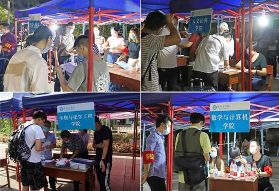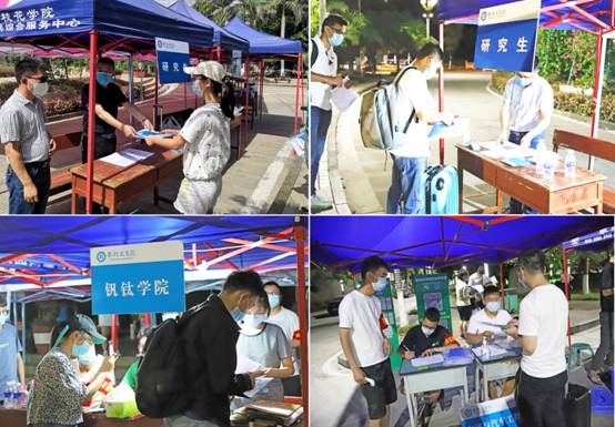 在引导志愿者的指引下,返校学生有序排队办理报到手续。核验资料、发放学校准备的健康包、讲解疫情防控要求,研究生报到点和二级学院报到点的领导、师生志愿者暖心服务。
