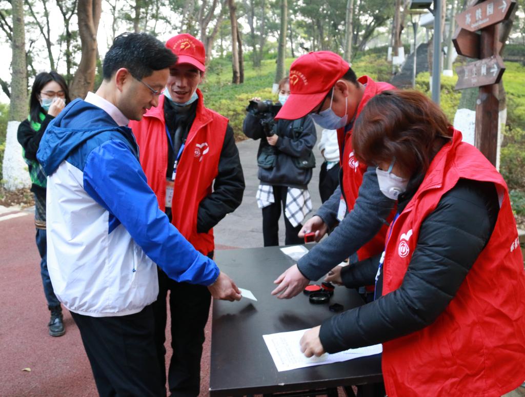 经过欢快激昂的三个小时,健步者们文明秩序地抵达终点。大家晃着打卡得到的“新”、“年”、 “快”、“乐”印章卡片,脸上洋溢着幸福快乐的笑容。