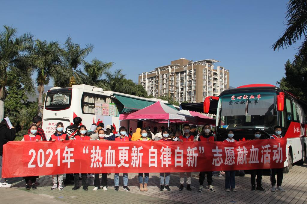 1月7号上午,在校党委书记王斌的带头下,300余名师生在致远广场积极参与了2021年 “热血更新,自律自新”无偿献血活动。