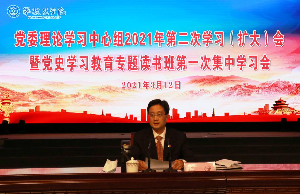 3月12日下午,学校党委中心组学习(扩大)会暨“学党史、强自律”读书班第一次集中学习会在会堂召开,传达学习全国、全省党史学习教育动员大会精神和《中共中央关于在全党开展党史学习教育的通知》《中共四川省委关于开展党史学习教育的实施意见》精神,安排部署学校党史学习教育工作,围绕党史学习教育对学校新学期相关工作进行了安排。学校党委书记、党史学习教育领导小组组长王斌主持会议并讲话。全体校领导,全校副县级及以上干部、各单位助理、各基层党支部书记参加会议。